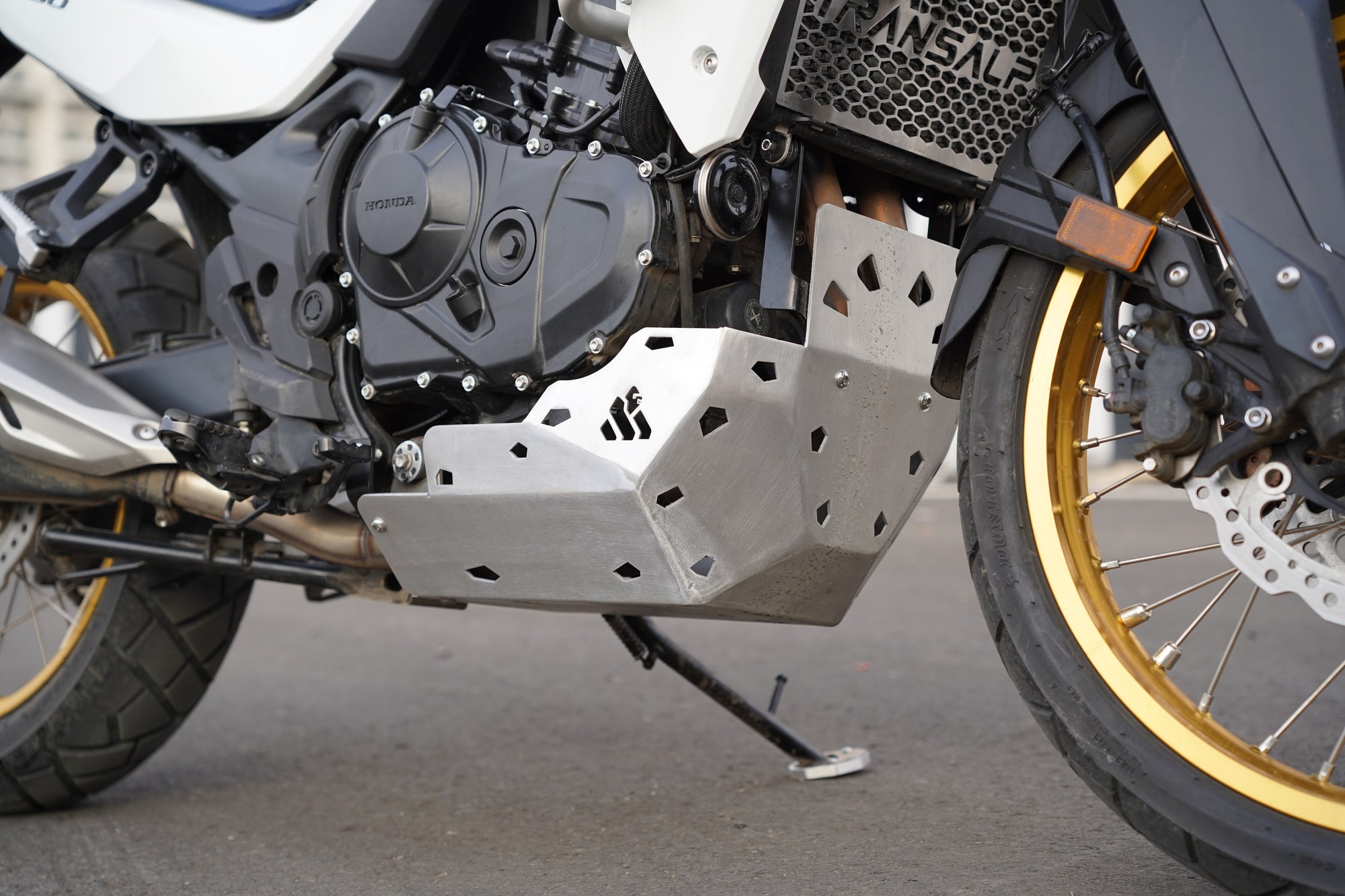 The Machina Skid Plate for Transalp XL 750 provides essential protection for the engine and lower components during off-road and touring rides. Built from high-strength aluminum, it shields against rocks, debris, and uneven terrain. Its precise fit and durable finish ensure reliability without compromising on style.