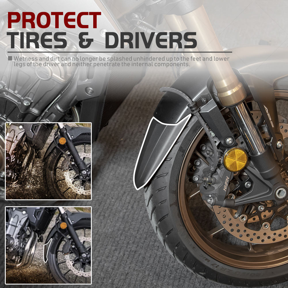 The Machina Front Fender Extender is a precision-engineered accessory designed to enhance the protection of your Honda CB650R/ CBR650R 2019-2023. It extends the coverage of the stock front fender, effectively reducing mud, debris, and water spray from reaching the engine, exhaust headers, and lower body panels — keeping your motorcycle cleaner and more protected in all riding conditions.