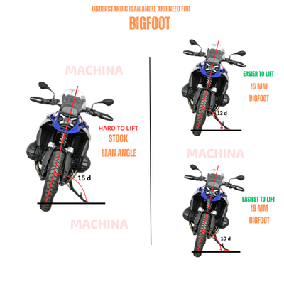 BIGFOOT™ ( side stand enlarger) extends the side stand’s base surface to almost double its original size, ensuring maximum stability even when your bike is fully loaded. No more worrying about your bike slowly slipping on wet roads, soggy trails, or uneven parking spots. The added leverage also makes it easier to climb onto, keeping your loaded motorcycle standing on kick stand.